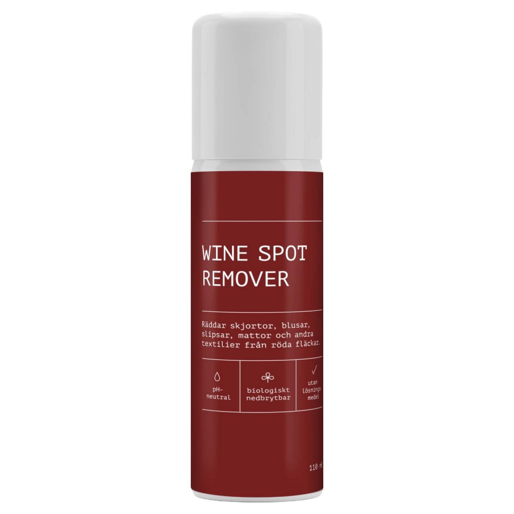 Wine spot remover tar bort de flesta fläckar av rödvin, bär, sylt, kaffe mm.